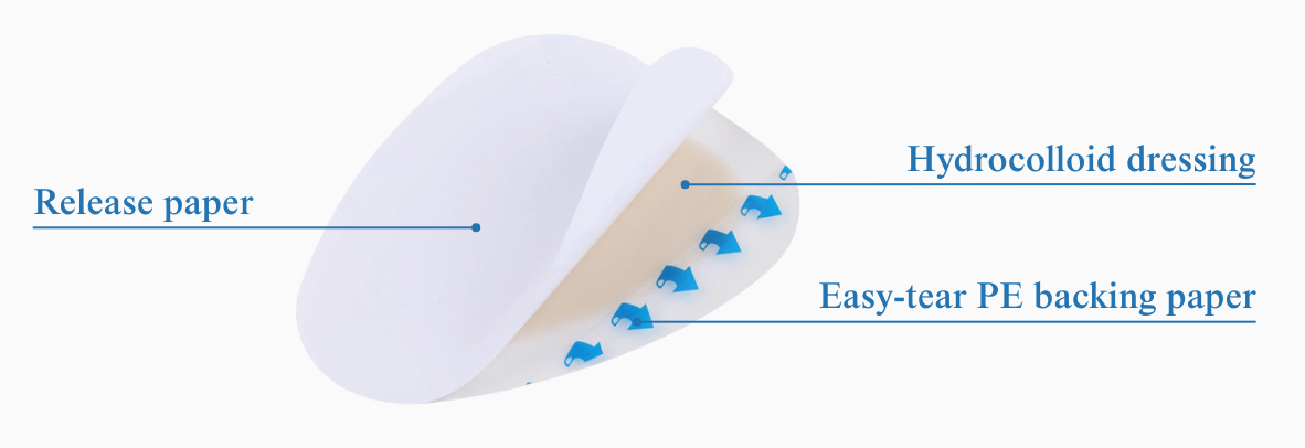 The hydrocolloid sacral patch comprises three layers: a liquid-absorbent layer, a protective film layer, and a release liner layer. The liquid-absorbing and moisture-retaining functions of the hydrocolloid create a moist healing environment for the wound, which helps promote wound healing and reduce the risk of secondary bacterial infection and inflammation of the wound.