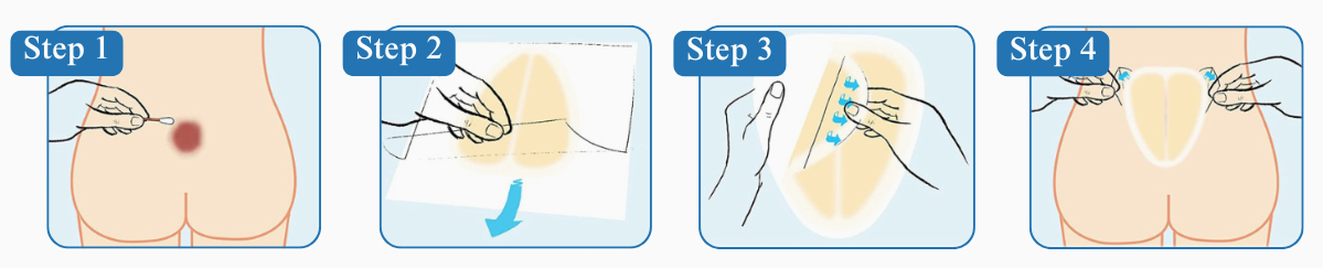 Shape Design: Available in "butterfly shape, heart shape" or other custom curved shapes. It fits the physiological curvature of the sacral area, ensuring high conformability. Size: It has a relatively large size and a wide coverage range, which can protect the sacrum and the easily damaged surrounding skin. Adhesive Performance: The adhesive layer at the edge is wider, and the adhesive strength is moderate, balancing good adherence and easy removability. Strong Liquid Absorbency: Made of hydrocolloid material, it will gradually absorb skin secretions and form a gel-like substance. This maintains skin dryness and reduces skin irritation caused by moisture. |